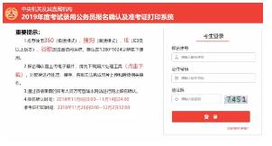 2019年度考试录用公务员报名确认及准考证打印系统: