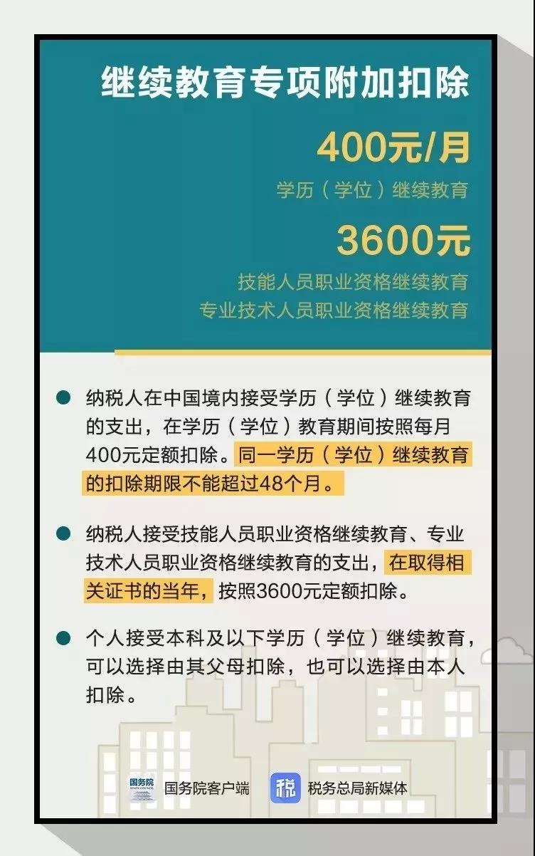 从这次个税改革增加继续教育专项附加扣除措施,我们可以感受到: